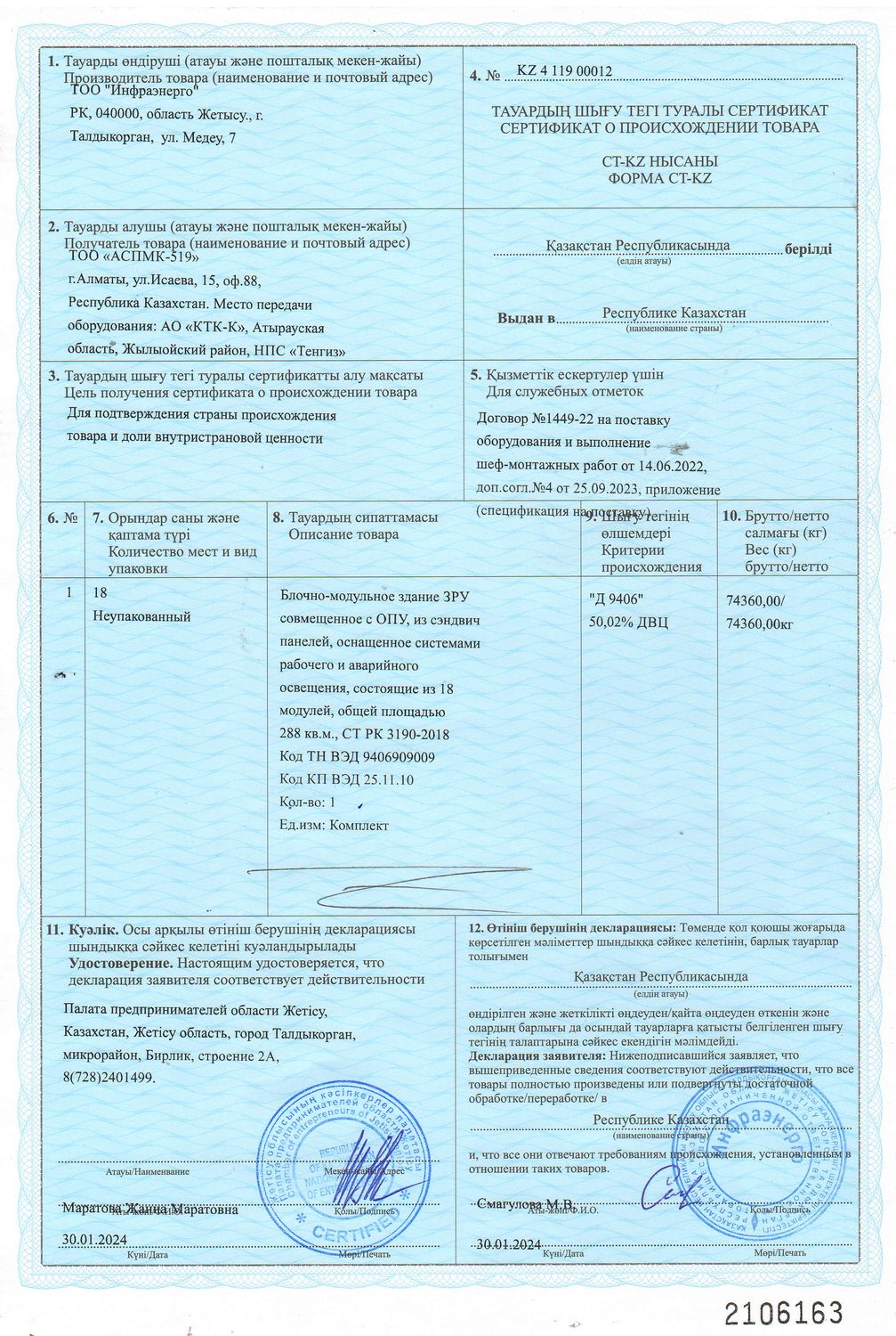 Сертификат о происхождении товара: БМЗ